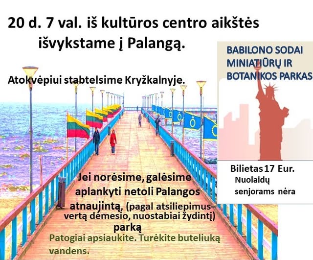 20 d. 7 val. kelionė į Palangą. Užstatas 10 eur.