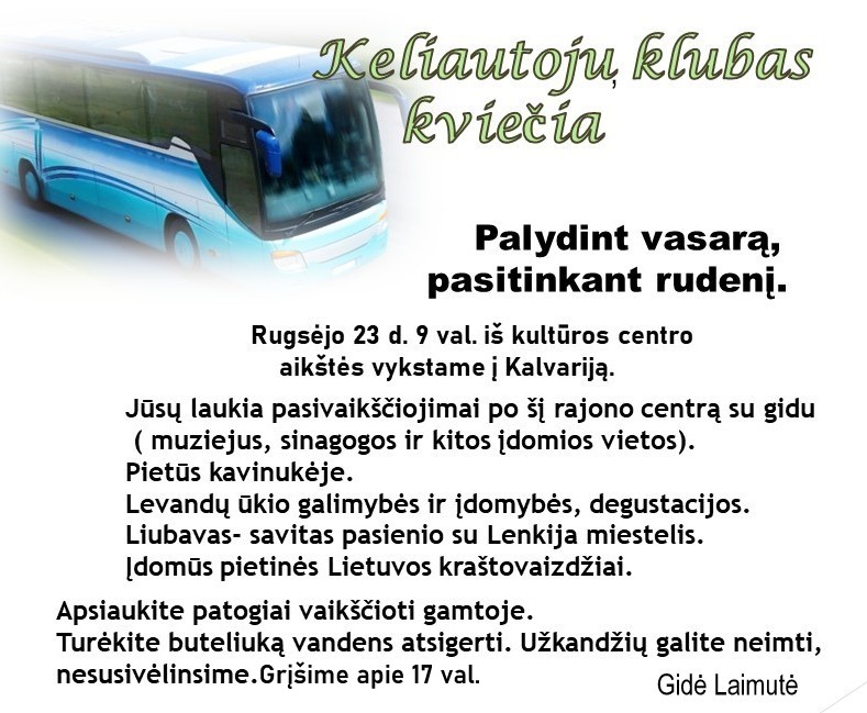 Išvykstame 7 val. iš kultūros centro aikštelės