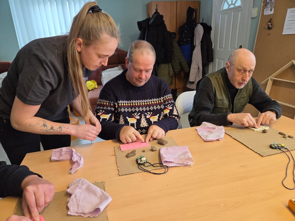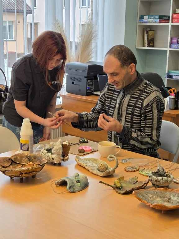 Kartu su Buities kultūros fakulteto klausytoja Danute Vikšraitiene ir Kudirkos Naumiesčio profesinio rengimo centro mokytojomis ir moksleivėmis vedėme edukaciją Vilkaviškio LIONS klubo Dienos užimtumo centro lankytojams. Danutė Vikšraitienė patraukliai pasakojo apie savo sukurtus dirbinius, čia pat juos demonstravo, vaizdžiai aiškino, kaip jai pavyksta juos pagaminti, supažindino su technologijomis. Paskui kartu su lankytojais gaminome nesudėtingus gaminius. Visiems patiko gražus bendravimas, sudomino patraukli veikla, todėl visi kartu numatėme planus ateičiai.