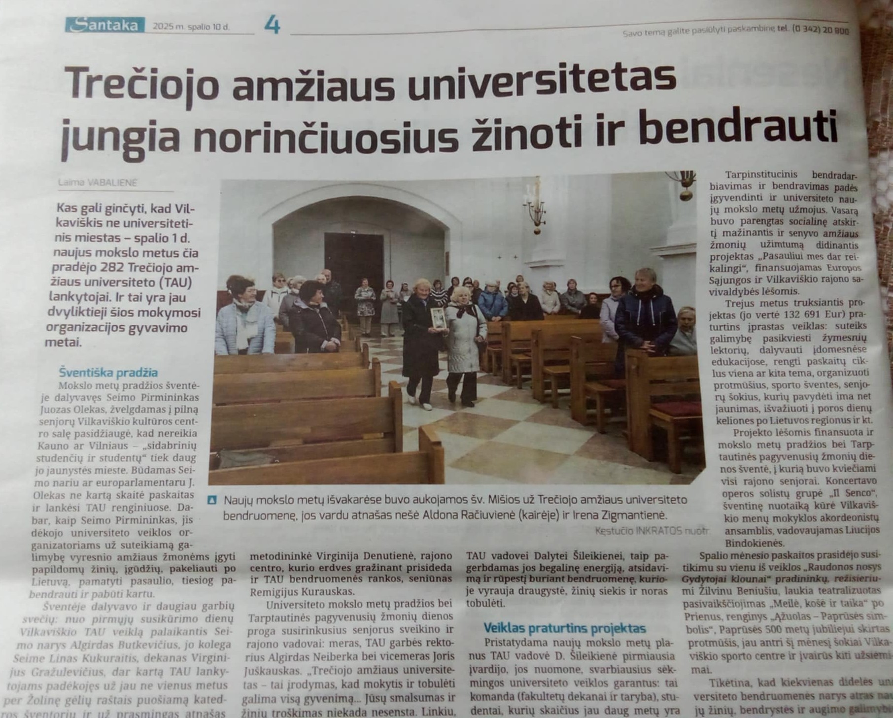 Apie mūsų veiklą šiuo sudėtingu laikmečiu skaitykite krašto laikraštyje "SANTAKA" 2020 m. gruodžio mėn. 18 d. Nr 97 (4319)