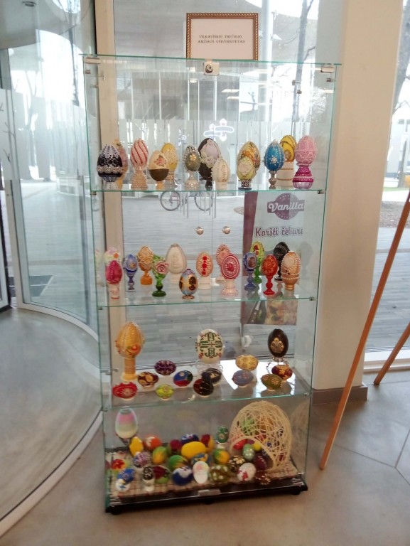 Įdomiai išpuoštus margučius garsiųjų Faberžė kiaušinių stiliumi, kuriuos sukūrė Dailės technologijų fakulteto moterys (dekanė Marija Ščerbienė), galite apžiūrėti Vilkaviškio autobusų stoties salėje (prie įėjimo). Čia paroda veiks nuolat, tik pastoviai keisis eksponatai- kūrybingų moterų rankomis sukurti gražūs darbai.