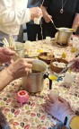 Apie Velykinius papročius, iki šių dienų išlikusias senąsias tradicijas, margučių marginimo būdus TAU klausytojams vaizdžiai pasakojo Lina Bakaitienė. Vašku pakvipo visa salė, kai pradėjome lydyti vašką. ir lieti žvakutes. Užsiėmimą labai pagyvino Dailės technologijų fakulteto moterų paruošta, nuostabiais raštais išdabintų margučių paroda. Šiuos darbus visi galės apžiūrėti autobusų stotyje, pastoviai veikiančioje Dailės technologijų fakulteto darbų parodoje.