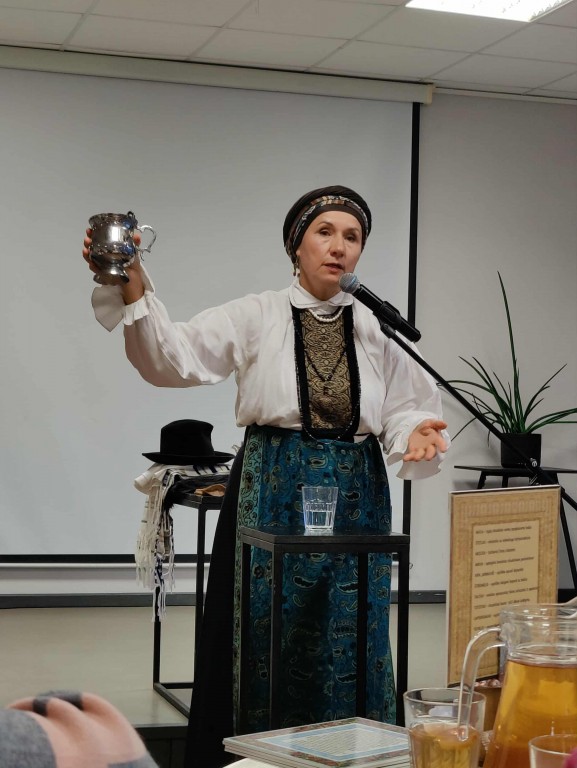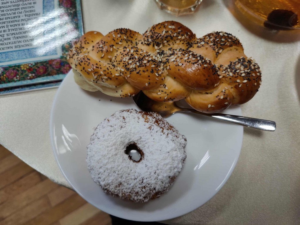 Vėliau vykome į kitą Kėdainių rajono kraštą – Krakes ir dalyvavome edukacijoje “Žydų kaimynystėje 150 metų: kodėl “žydiškai” reiškia “atvirkščiai”. Klausydami Krakių bendruomenė atstovės Daivos- žydės Saros pasakojimo apie ortodoksų žydų papročius, aprangą, kultūrą ragavome žydiškus valgius atvirkščiai.