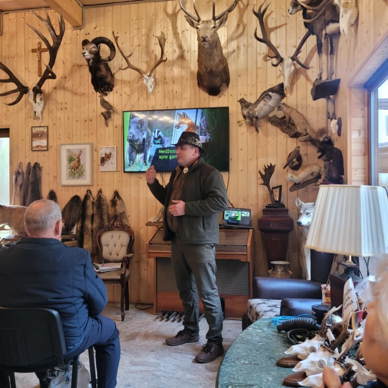 Andrius Rapalas savo pasakojimu ir rodomo filmo turiniu atvėrė visai kitokį požiūrį į medžioklę, į medžiotojų atsakomybę ir pareigas gamtai. „Gamta Dievo kūrinija“ -skambėjo mintys tarsi sudvasindamos žmogaus ir gamtos ryšį. Pamatėme medžioklės tradicijas Lietuvoje ir svetur.